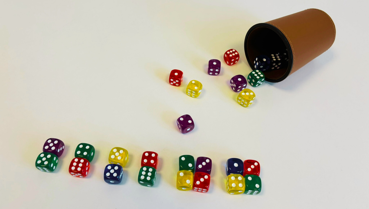Beide Personen würfeln gleichzeitig oder abwechselnd mit vielen Spielwürfeln (z. B. etwa 18 bis 25) in einem Becher. Bevor sortiert wird, schauen sich beide den eigenen Wurf an und schätzen: Wer hat wohl mehr Punkte gewürfelt und worauf gründet sich die Vermutung? Diese erste Schätzung ist ein wichtiger Teil des Spiels.